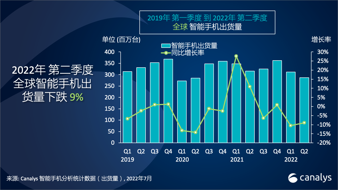 Canalys:受市场需求下降影响,2022 Q2 全球智能手机出货量下跌 9%