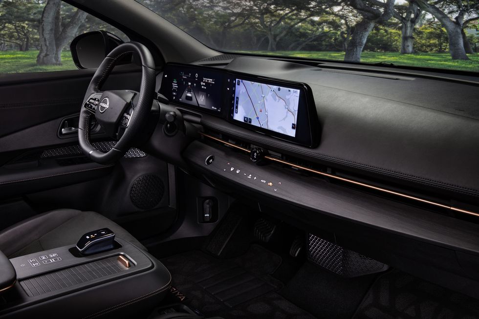 与数字外表组比较,图形看起来过期了,在咱们看来,数字外表组在其多种布局中更明晰、更明晰。但关于一向尽力打造具有竞争力的信息文娱体系的日产来说,这是一个很大的前进。与其它新能源轿车惯用的接触式大屏规划不同,ARIYA艾睿雅立异选用双联屏+虚拟按键,空调功用集成在木饰板上,触控回馈让每一次调理都更有温度,更有典礼感。